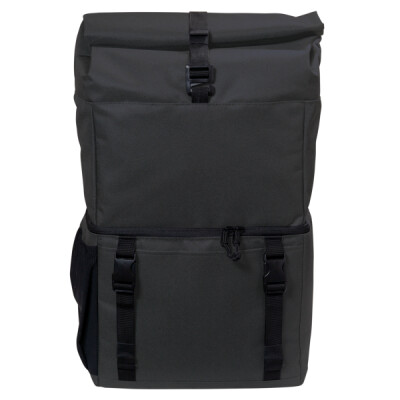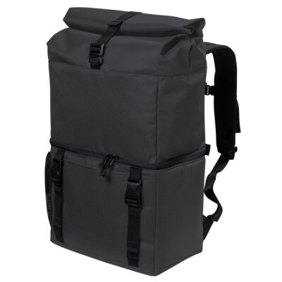 This is a cooler that packs everything for an adventure and so much more! Whether you're camping or going on a picnic, this unique backpack has the capacity for 18 cans in the bottom cooler compartment and dry storage space in the upper roll-top compartment. A front slip pocket and buckles add additional storage and carrying options.