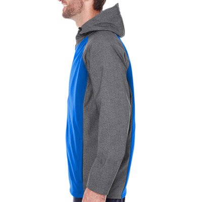 Lightweight, soft shell outer fabric in 96% polyester, 4% spandex bonded to brushed jersey; 96% polyester, 4% spandex bonded to brushed jersey; Dry-Excel™ Maze Mesh inserts at shoulders; Sleeves, hood and panels have the Tech Print pattern detail; Adjustable hood; Adjustable drop tail hem with hidden drawcord; Dual front and chest zippered pockets; Dual inside pockets;